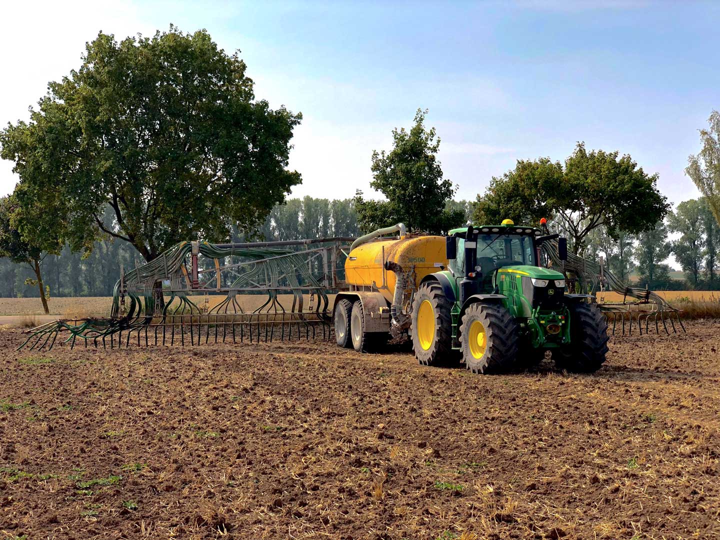 Wir bewirtschaften unsere Felder aktuell mit modernster Technik. Hauptsächlich kommen dabei Taktoren von John Deere zwischen 120 und 280 PS zum Einsatz. Die Maschinen, mit denen wir unsere Schläge bewirtschaften haben eine Arbeitsbereite von 3 bis 7 Meter. Bei der Bearbeitung unserer Äcker setzen wir auf das Spurführungssystem (StarFire) von John Deere.